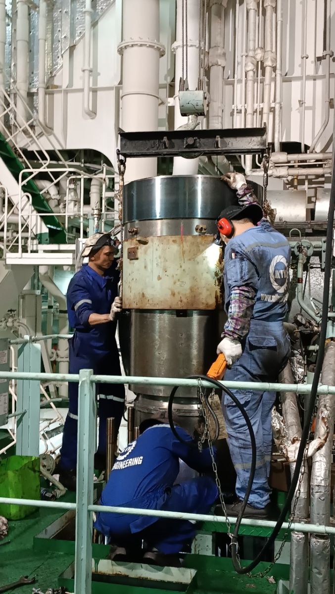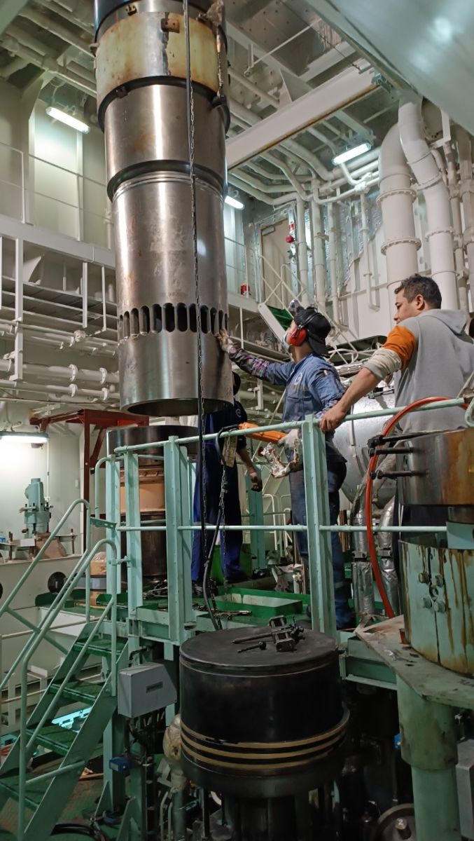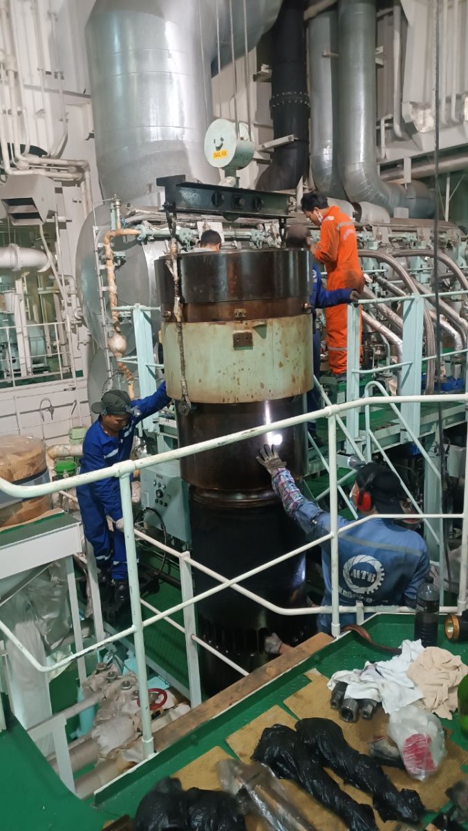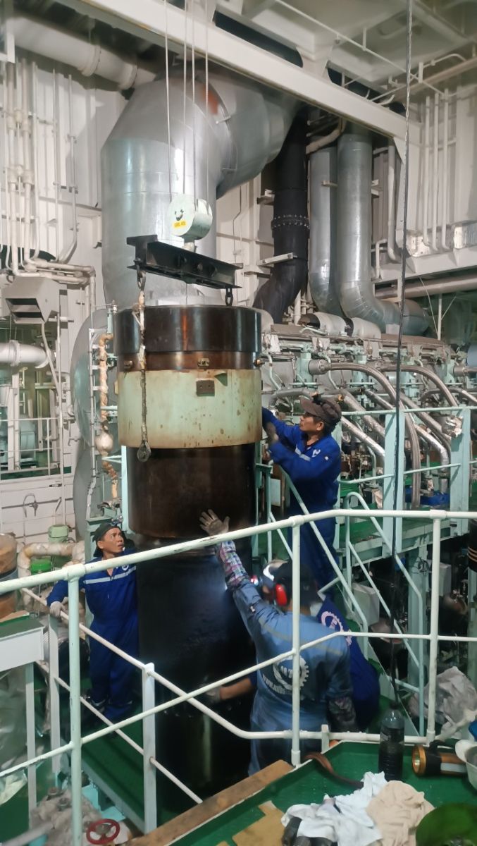 Overhaul cyl liner for Man B&W 6S60ME of MV Ever Cope at Vung Tau anchorage