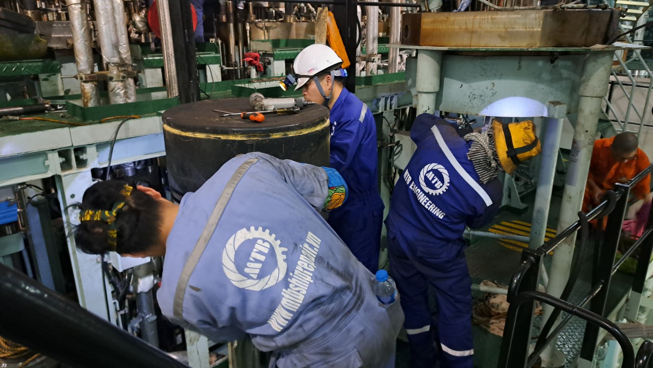 Overhaul Piston for Man B&W 6S60ME of MV Ever Core at Vip Green port in Viet Nam
